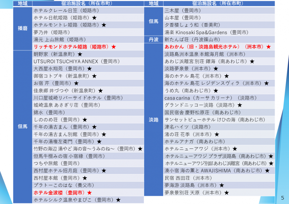 「ひょうごユニバーサルなお宿」は、ユニバーサルツーリズムの推進に積極的に取り組むことを宣言した宿泊施設を県が支援し、登録・情報発信する制度です。 このたび、宣言施設が100施設に到達するとともに県が定める基準を満たす7施設を登録施設(第三弾)として決定しました。