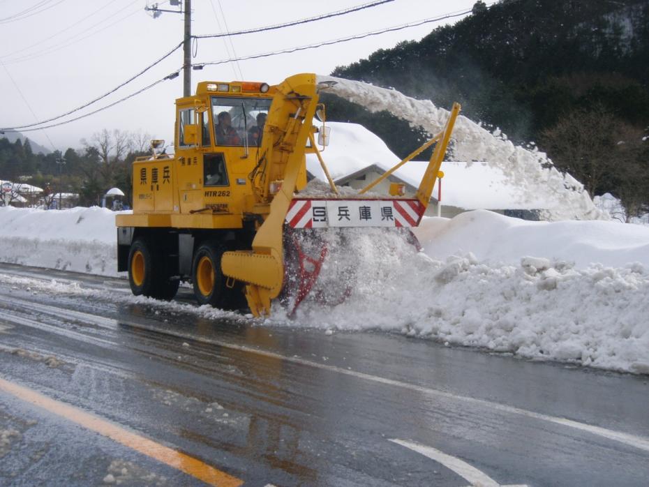 豊岡市では、10年間の年間平均降雪量が、豊岡市街で約120cm、神鍋で約350cm、城崎で約120cmと、毎年のように降雪があり、道路などに雪が積もっています。