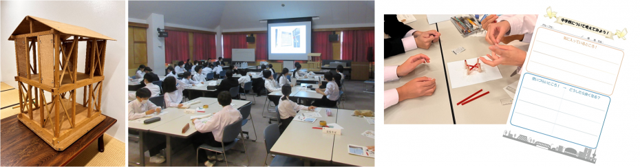 当課では、令和4年度より管内の中高生を対象に住宅の耐震化の重要性やまちへの関心を高めてもらうため出前講座を実施しています。耐震性をあげる手法の紹介や実際に耐震模型を使った体験をしてもらったほか、地域の歴史や特徴を紹介し、まちづくりに関する提案を行ってもらうなど、講義だけでなくワークショップも取り入れた講座を行っています。
