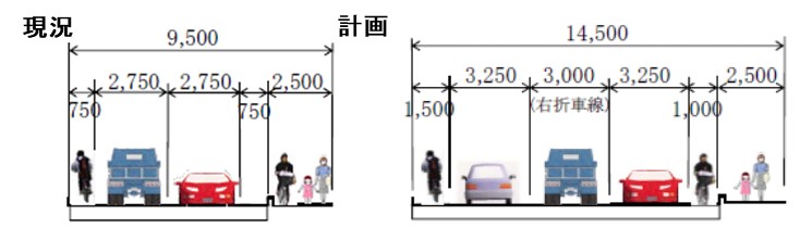 本路線は、京都府舞鶴市を起点に兵庫県の豊岡市街地、山陰近畿自動車道を経由し鳥取県岩美町を結ぶ主要幹線道路です。新温泉町内ではJR山陰本線と浜坂駅南側で並走し、浜坂踏切を含む距離の短い町道で都市計画道路の浜坂駅港湾線と接続している交通の要衝となっています。そのため、本事業では付加車線の設置と踏切内を含む歩道の設置を行うことで交通の錯綜を緩和し、付近にある小中学校の生徒、児童の安全を向上するとともに朝夕の慢性的な渋滞の解消を図ります。