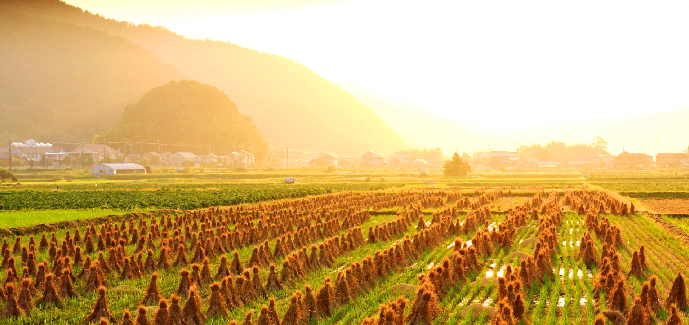 山々から流れ出る清らかな水、そして肥沃な土壌が、粘りと甘みのあるお米を育てています。