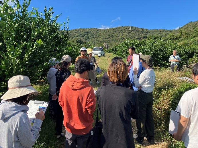 脱サラして夫婦で白ネギを周年出荷し農福連携にも取り組む「壽 (ことぶき)ファーム(太子町)」や、ゼロから新規就農し露地・施設で野菜を周年栽培する「伊東農園(相生市)」、移住就農でみかん等を栽培する「赤穂フルーツ農園(赤穂市)」を18名が見学しました。