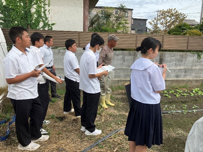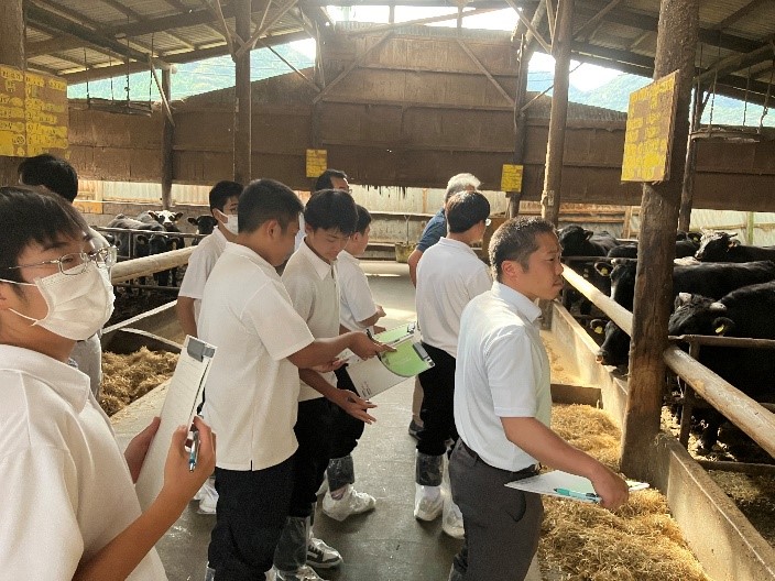 管内農業関係科高校生9名が雇用実績のある「井寄牧場(肉用牛)」、「開發農園(施設・露地野菜)」、「児島園芸(施設・露地野菜)」を見学し、「自分が農場に就職するなら…」というイメージを膨らませました。