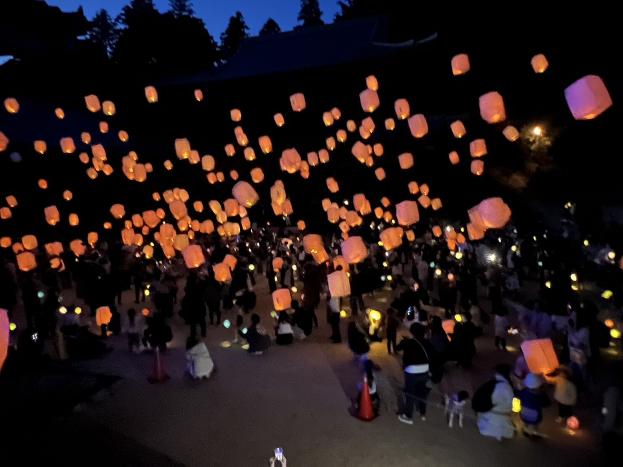 当日は、LEDライト入りの空飛ぶランタン100基が夜空を彩ります。会場はJR佐用駅から徒歩すぐの佐用町役場の駐車場。姫新線の列車とランタンをセットで撮影すれば、きっとSNS映えするはずです。見学のみでも大歓迎!
