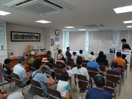 ダムの歴史等を学ぶ様子 |