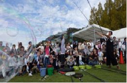 西播磨エコフェス事業は、令和6年秋に開催した西播磨フロンティア祭で、環境をテーマにしたブースを設け、脱炭素行動人気投票、海ごみジオラマの展示、フードドライブ運動のほか、ステージではシャボン玉ショーなどを行いました。1万8千人にご来場いただいたイベントで、ご家族で一緒に楽しみながら環境配慮について考える機会になったと思います。