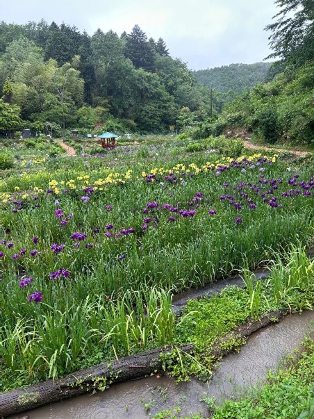 6月初旬に、佐用町西新宿にある「花しょうぶ園」を訪問しました。岡山県との県境にある奥深い集落で、おじいちゃん1人とおばあちゃん数人が、近隣のボランティアと一緒に運営されている園です。五分咲き程度でしたが、色とりどりのしょうぶに包まれ、笹百合も咲いている、まるで桃源郷のような場所でした。